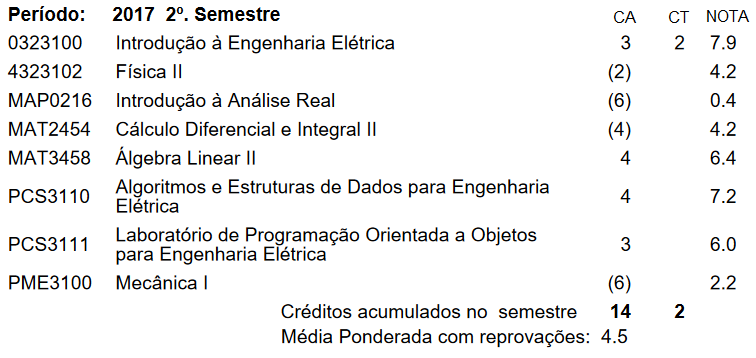 Haviam 2 semestres antes de começar a seleção pro intercâmbio, e em 1 ano dá pra fazer muita coisa. Peguei 12 matérias pra fazer em um semestre, e passei em todas. No semestre seguinte, peguei 10 matérias, e ainda estava trabalhando como monitor na faculdade, professor num cursinho popular e fazendo iniciação científica. Mesmo com todas essas atividades ao mesmo tempo, ainda assim consegui 7,5 de média, uma média que nunca havia aparecido no meu histórico escolar.